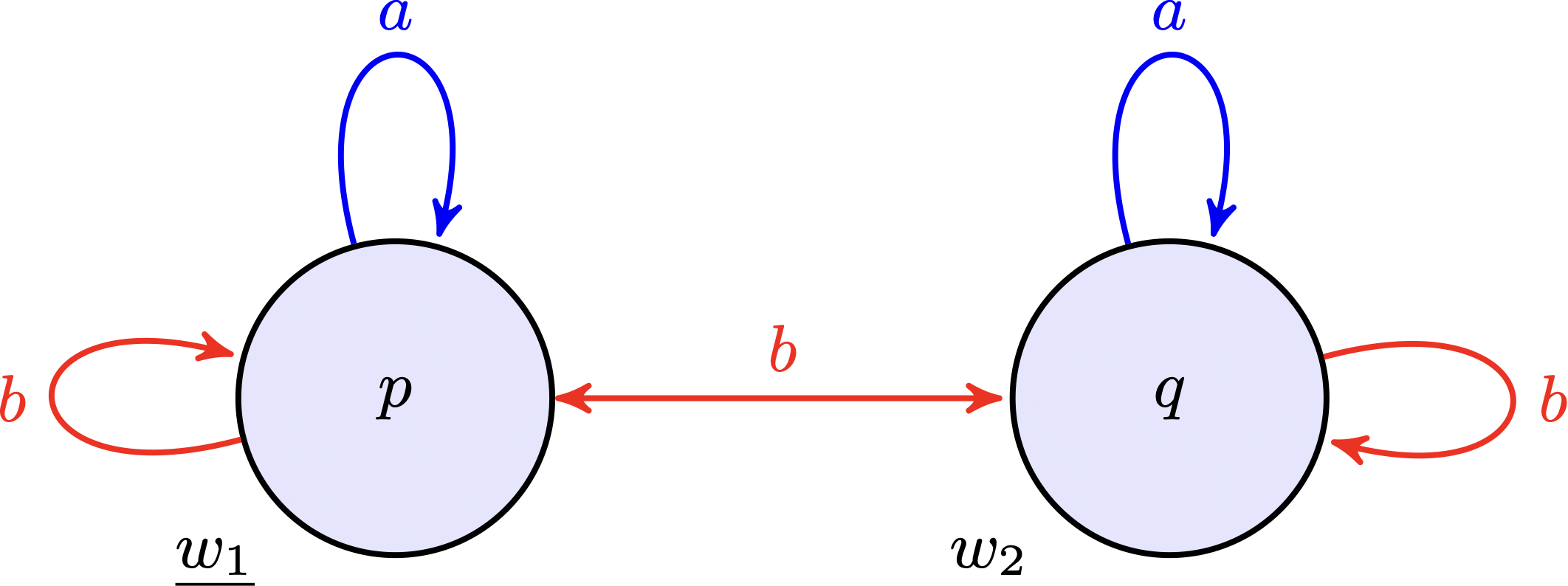 - \(K_a p \wedge \neg K_a q \wedge K_b q \wedge \neg K_b p\)